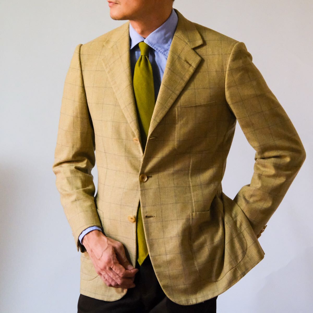 - Brioniブリオーニ イエローベージュピュアカシミヤペンチェックジャケット48