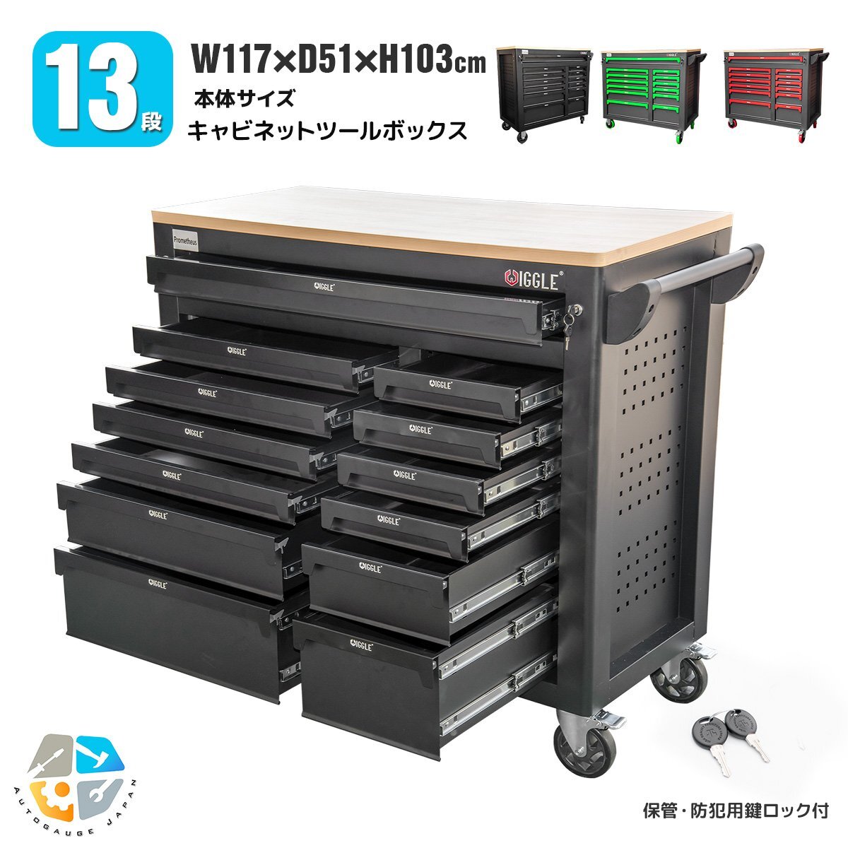 - 【チャーター便】13段引き出し付き キャビネット 大型工具箱 ツールボックス 大容量 収納 移動式 ベアリングレール 移動キャスター付き
