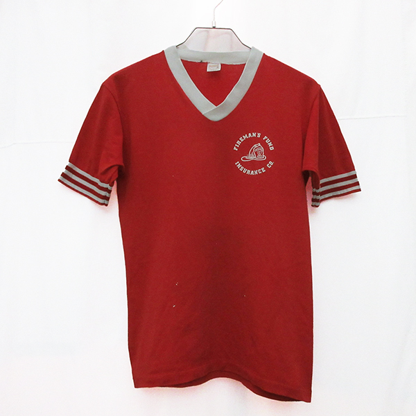 > USA製 ■80s FIREMAN’S FUND INSURANCE CO. Tシャツ リンガー 3本ライン 保険会社 レッド Sportswear 金タグ ヴィンテージ レトロ