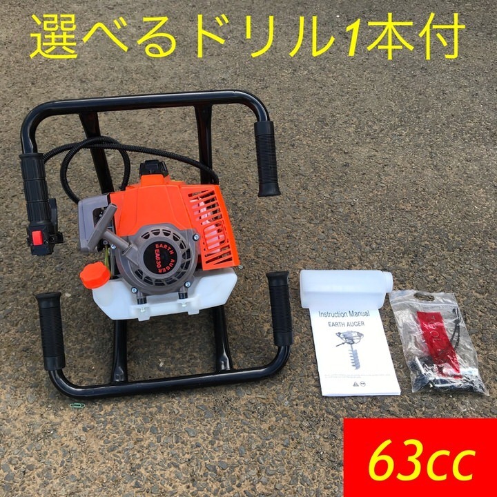 - エンジンオーガー63cc 穴掘り機 アースオーガー 選べるドリル1本付き eco-ea63