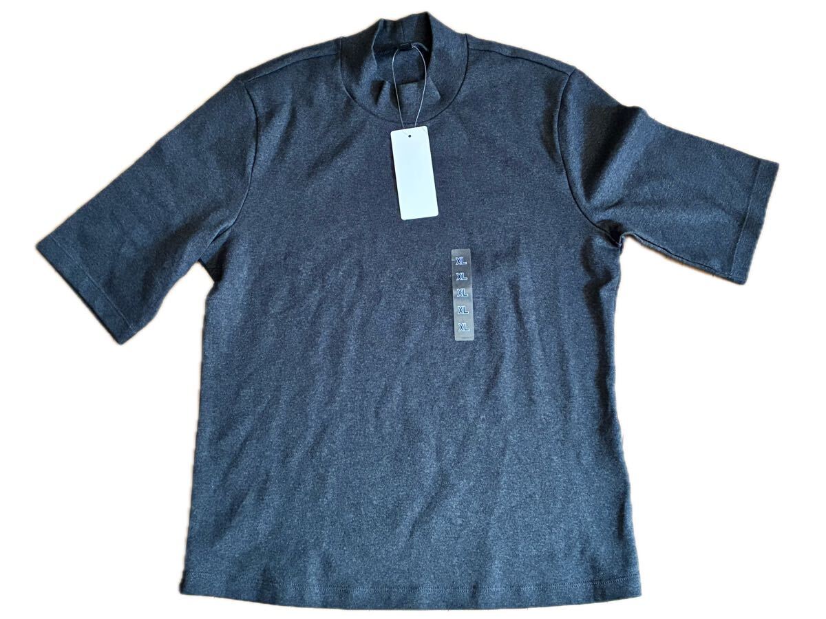 - 新品未使用、 UNIQLO ユニクロ 半袖ハイネックカットソー、XL、ダークグレー、1,500円の品