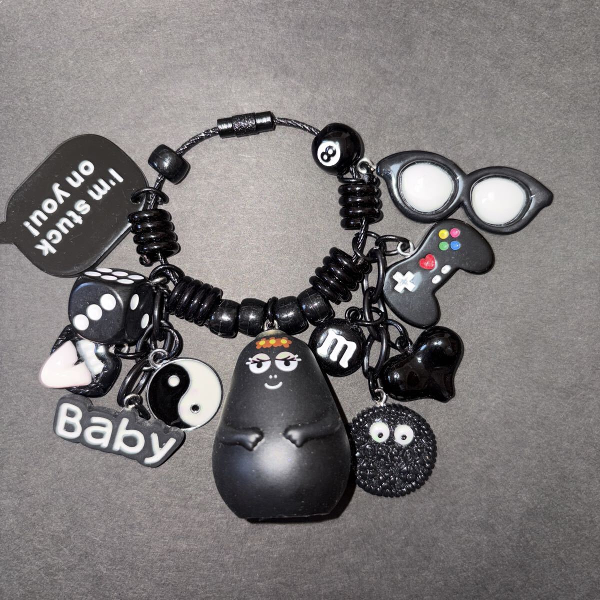 - ブラックモノトーンじゃらじゃらキーホルダーチャームストラップ