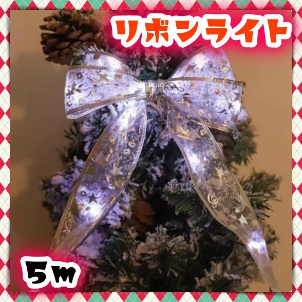 > クリスマスリボン LED イルミネーションライト 5m 電池式 リモコン付き 照明 電飾 50個LED ライト クリスマス クリスマスツリー 飾り