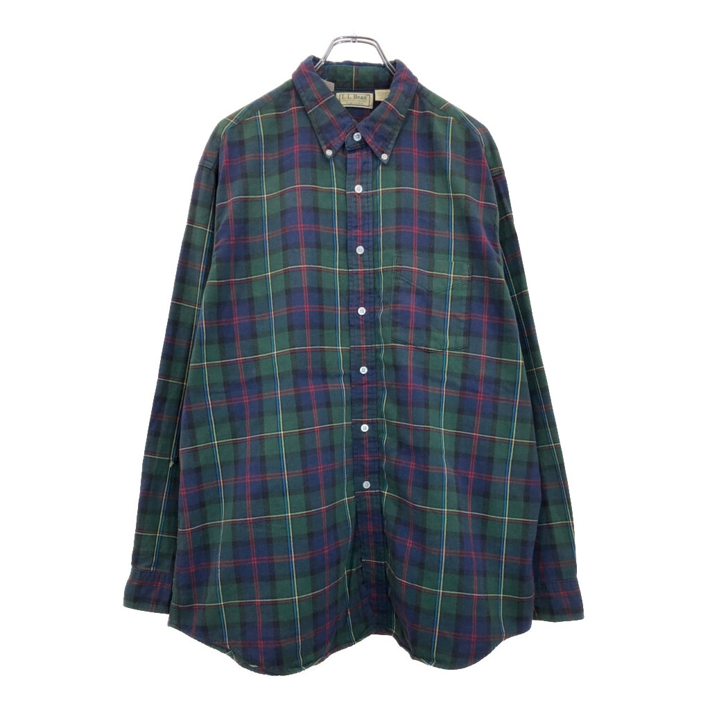 - 90年代 USA製 L.L.Bean エルエルビーン ボタンダウン 長袖シャツ アウトドア チェック グリーン(メンズ XL)中古 古着 v2568
