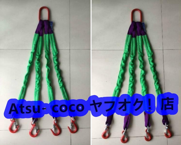 - 4本吊り ベルトスリング スリングベルト 作業用 荷吊り 合金鋼製フック付き リング付き ポリエステル製 1.5m 耐荷重3t ベルト幅5cm