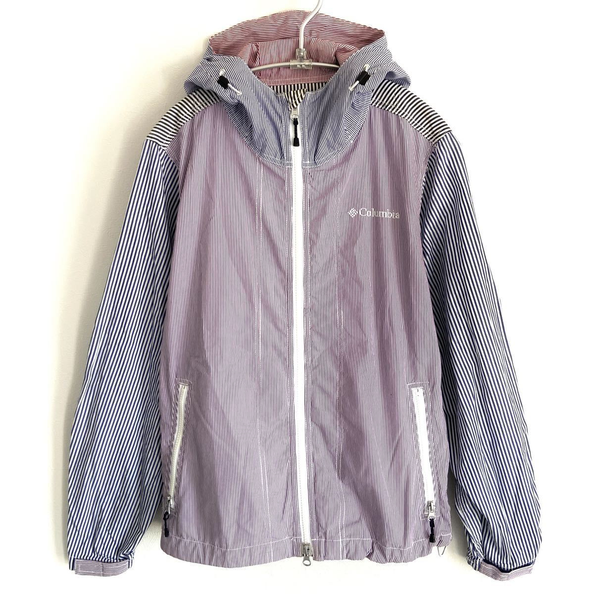 - 【Columbia/コロンビア】ストライプ マルチ マウンテンパーカー/S表記/刺繍ロゴ/白紫紺黒/綿100%/衝撃プライス!最強アウトドアギア★B 25