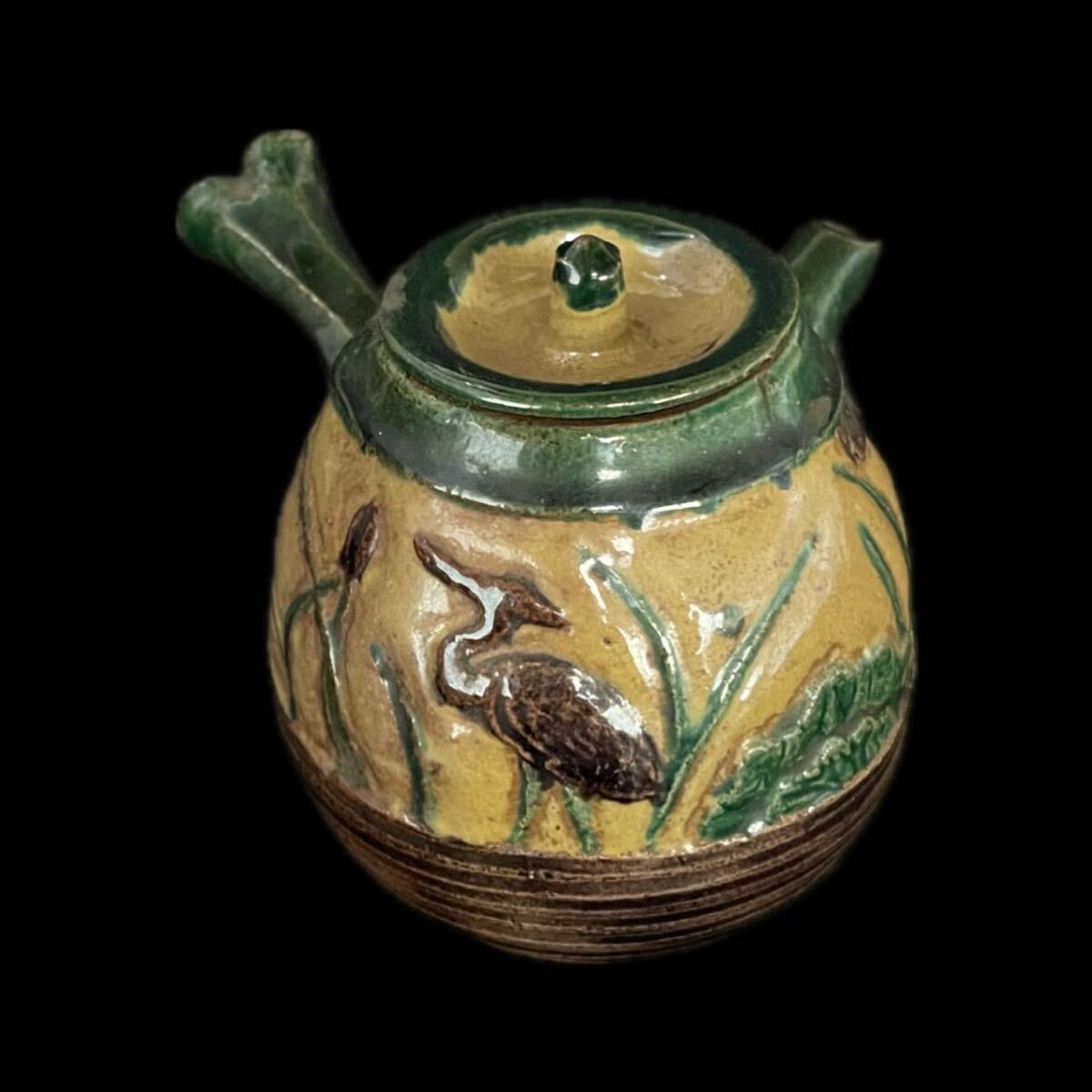 - 煎茶道具 交趾釉 鳥草図 横手急須 茶注(4b091704 1/7 4)