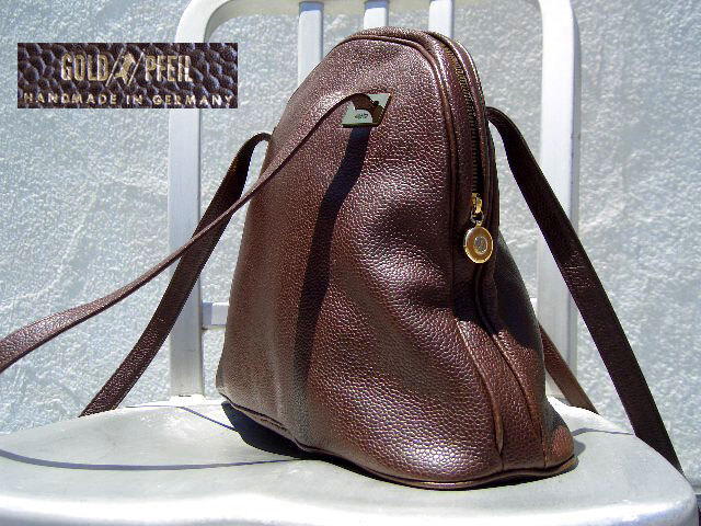 > GOLD PFEIL HAND MADE IN Germany サイズ感もイイ! 肩掛けOK クビレデザイン ドイツ 老舗名門 ゴールドファイル こげ茶色 シンプルモダン