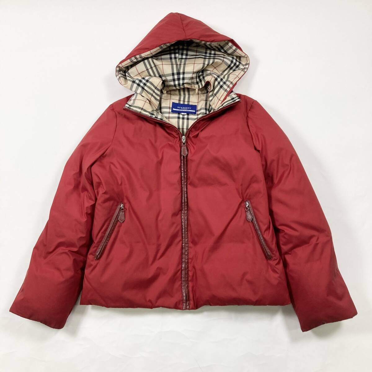 > ☆BURBERRY BLUE LABEL バーバリーブルーレーベル ダウンジャケット アウター ノバチェック ダウン90% レッド サイズ38 レディース 0.65kg