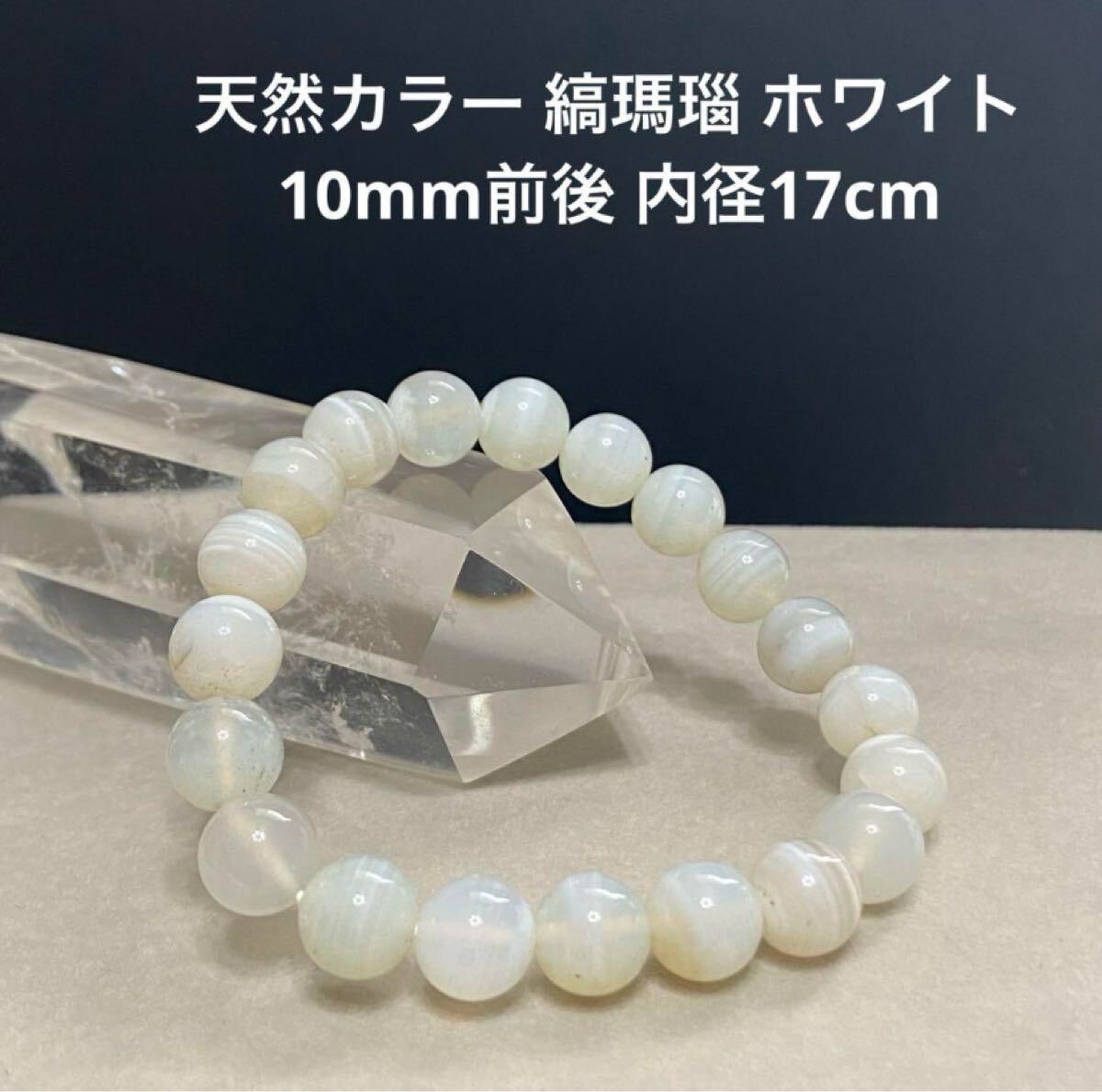 - D954 天然カラー 縞瑪瑙 ホワイト 10mm前後 内径17cm