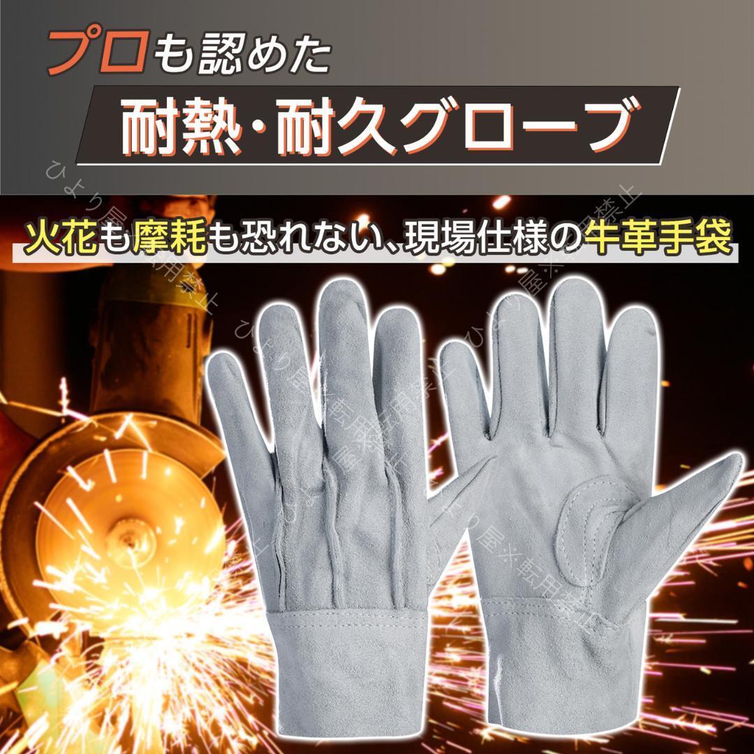 - 1双 作業用 革手袋 Lサイズ 耐熱 耐久グローブ 牛床革手袋 溶接手袋 現場仕事 グラインダー作業