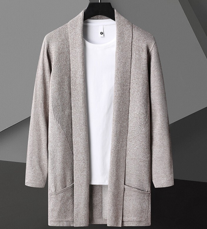 - メンズ カーディガン 秋冬 ニットジャケット ロング丈 ニットセーター アウター ロングコート ショールカーディガン カーキ M~4XL Z1313