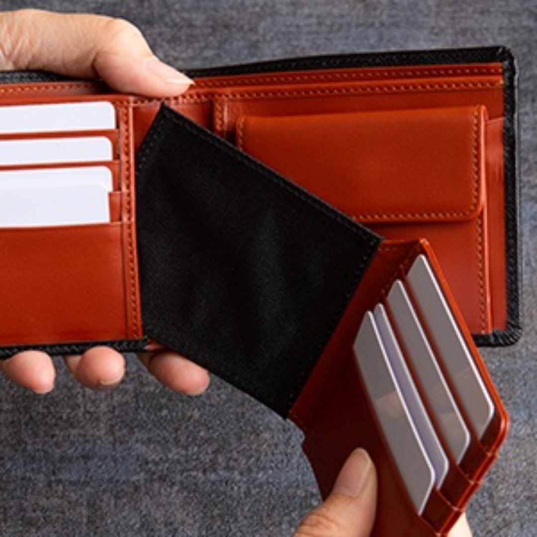 - 【訳アリ特価】本革 二つ折り財布 メンズ 17枚収納 着脱カードケース付き 牛革 ブラック 高級レザー