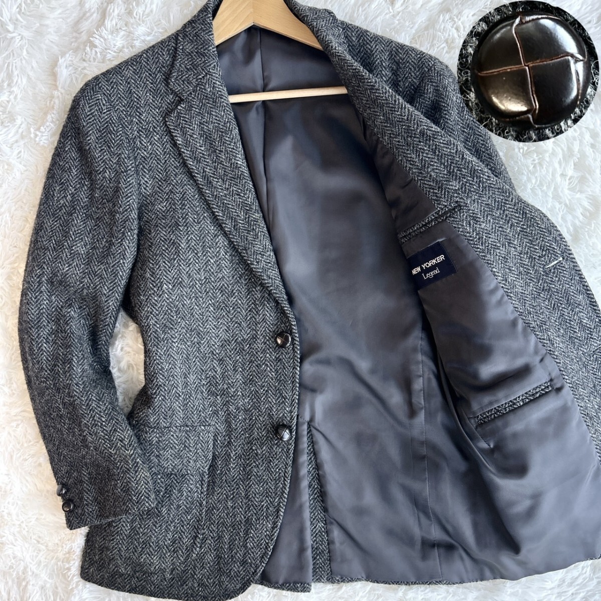 > NEWYORKER × Harris Tweed ニューヨーカー ハリスツイード テーラードジャケット ヘリンボーン A4 M位 メンズ 秋冬 胡桃ボタン くるみ