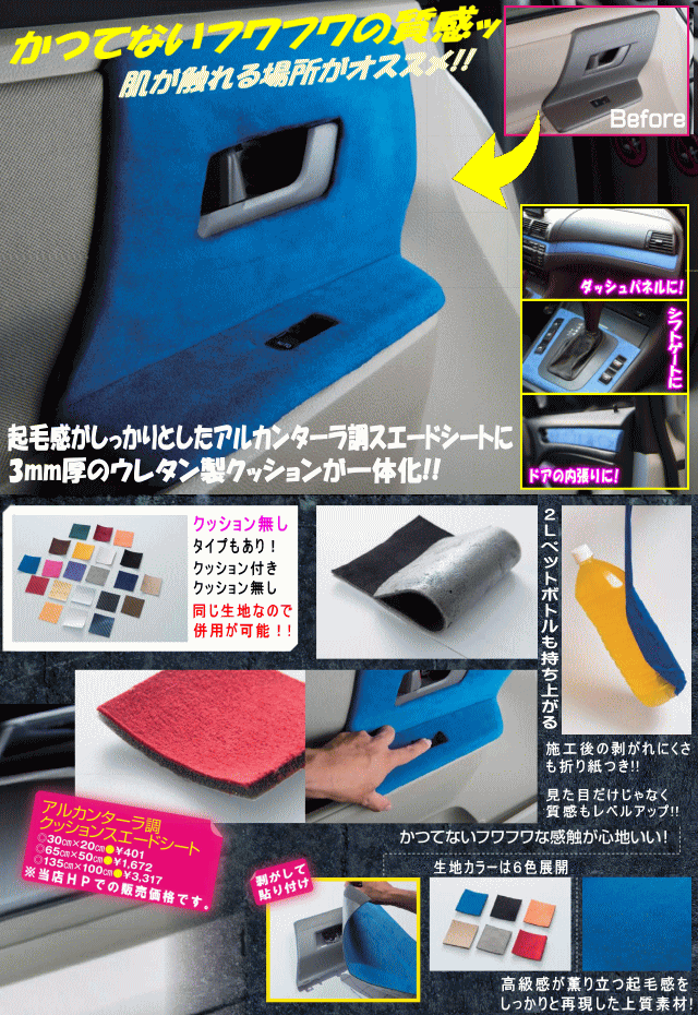 > クッション付きスエード シート (大) 黒 幅135×100cm アルカンターラ調ウレタンスポンジ付 生地ブラック糊付き車バックスキンルック内装 7