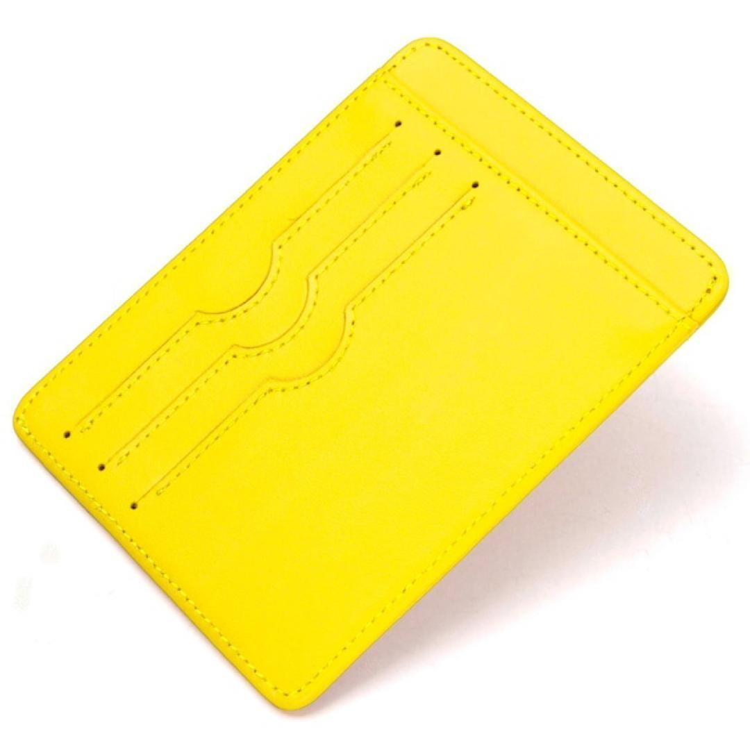 - 【訳アリ】カードケース 黄色 イエロー 本革 薄型 スリム カード入れ