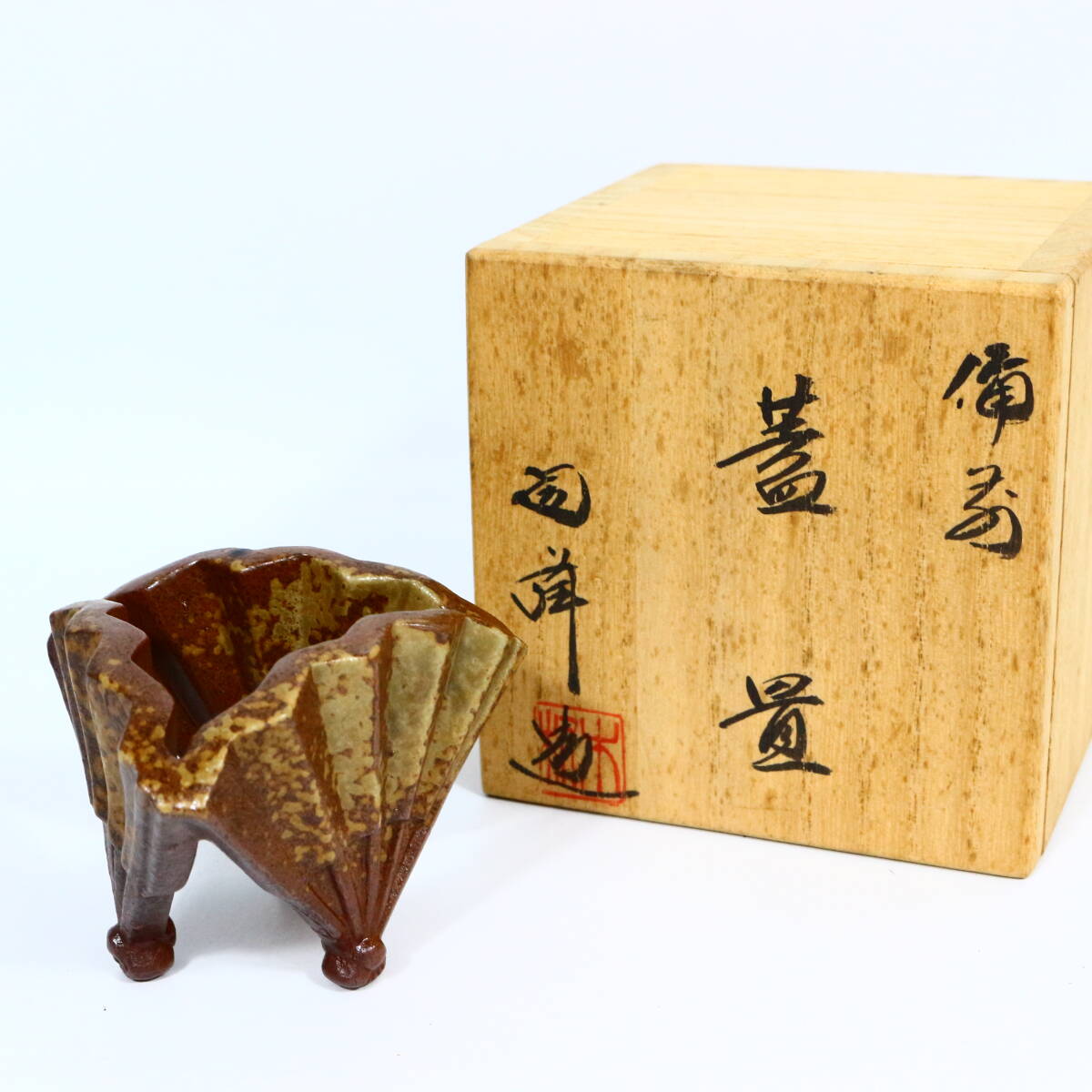 - 備前焼 蓋置 木村陶峰 三つ扇蓋置 茶道具 共箱