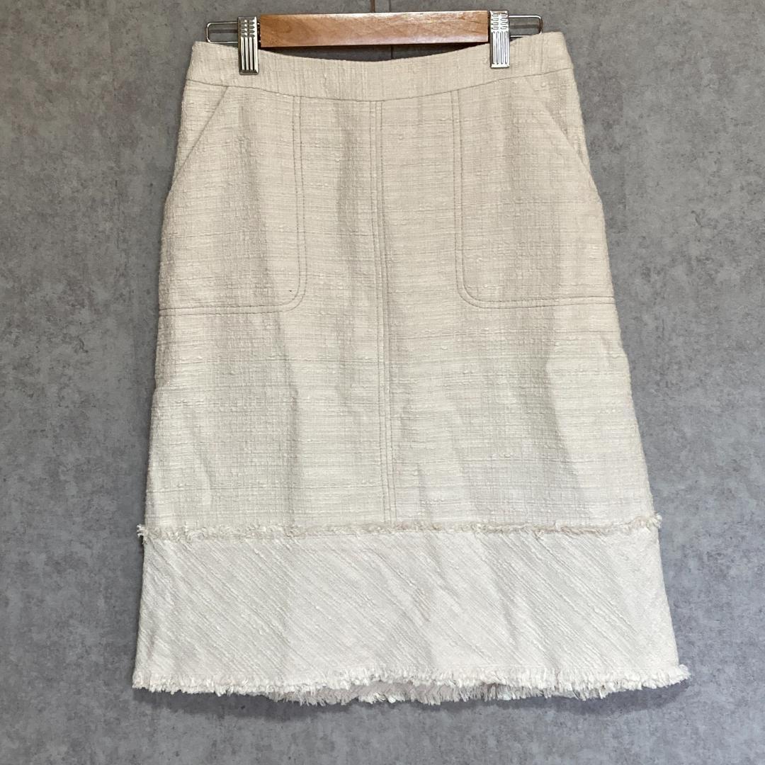 - ビアッジョブルー(1)リネンAラインスカート*ひざ丈*綿麻*ツイード*日本製