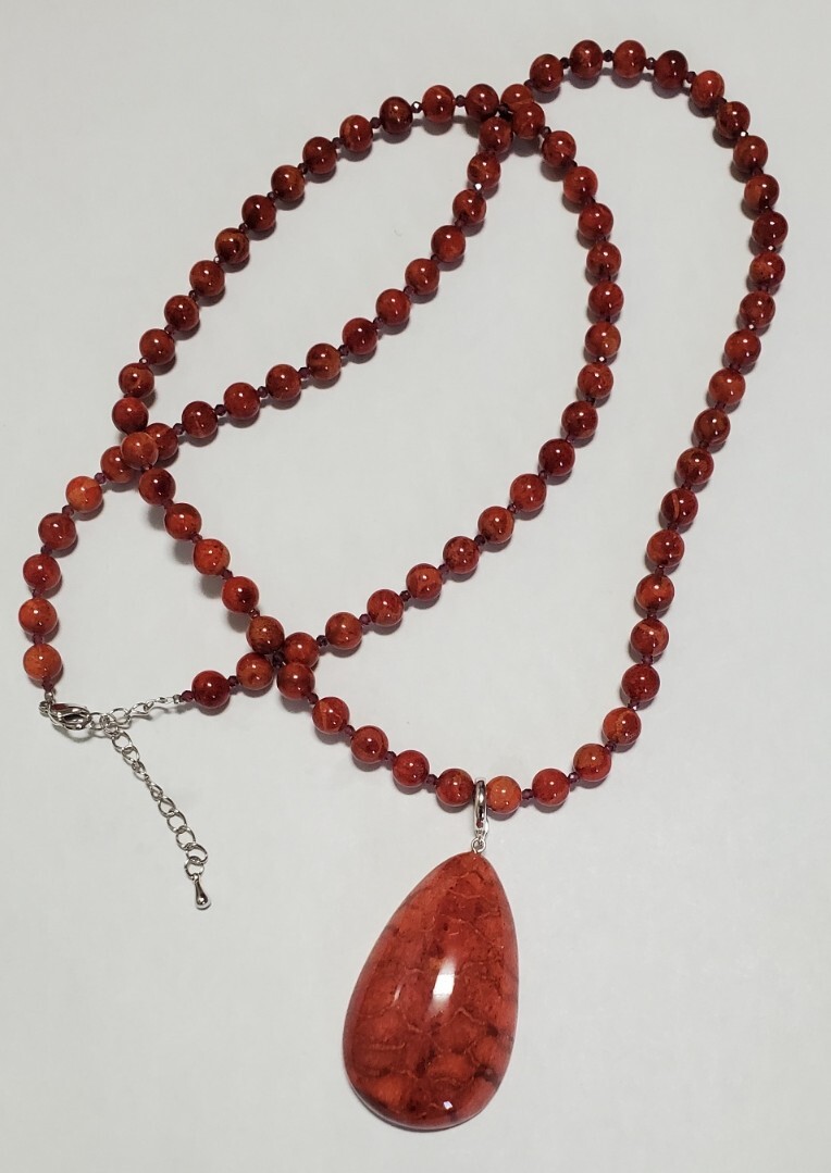 - ゴージャス 山珊瑚 ロング ネックレス レディース アクセサリー コーラル サンゴ ペンダント 81㎝-86㎝ 53,4g 美品