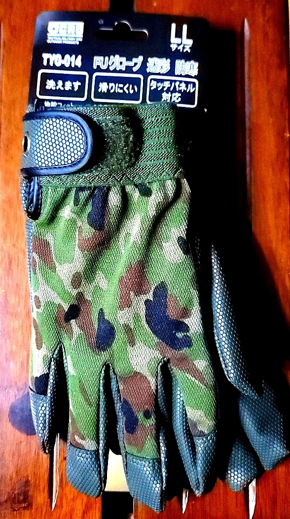 - 陸上自衛隊 仕様 迷彩防寒 PUグローブ LLサイズ 伸縮フィット カラビナ付き