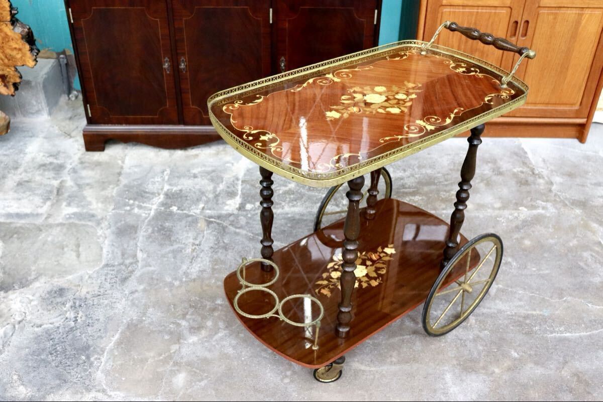 - GMIK480○イタリア製 アンティーク 配膳ワゴン キッチンワゴン ワインラック サイドテーブル ロココ調 象嵌細工 ヨーロピアン
