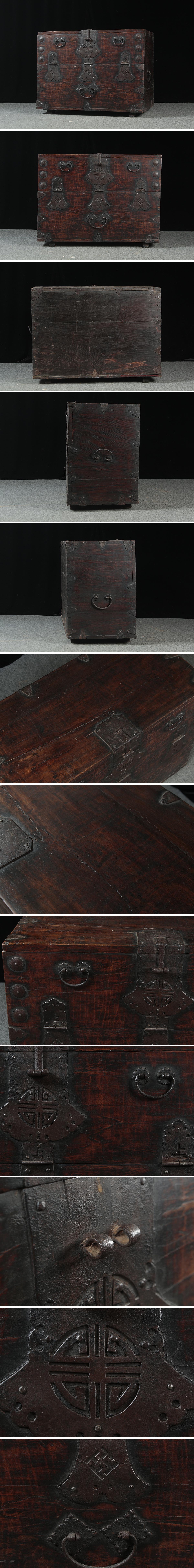 - DT353 朝鮮古美術 李朝家具 無垢材 卍/寿字透鉄金具 バンダジ 幅90cm 重41kg・半櫃・衣装箪笥・モリジャン・半閉櫃 李朝家具