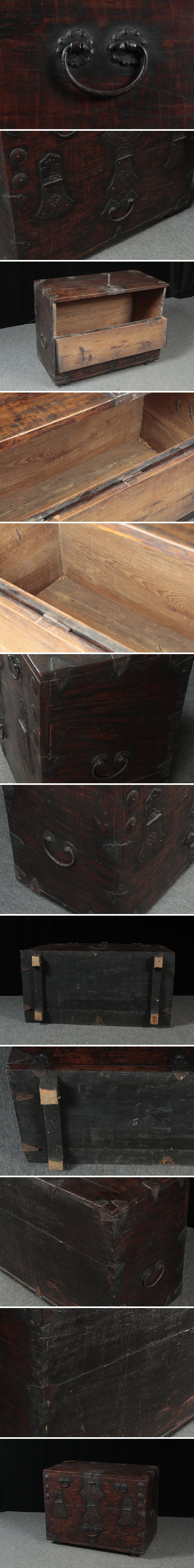 > DT353 朝鮮古美術 李朝家具 無垢材 卍/寿字透鉄金具 バンダジ 幅90cm 重41kg・半櫃・衣装箪笥・モリジャン・半閉櫃 李朝家具