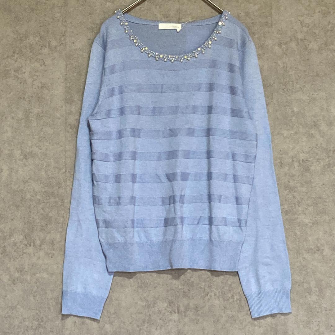 - 【新品】インデックス(M)ストライプニット*ビジュー付*ウール混*薄手*長袖