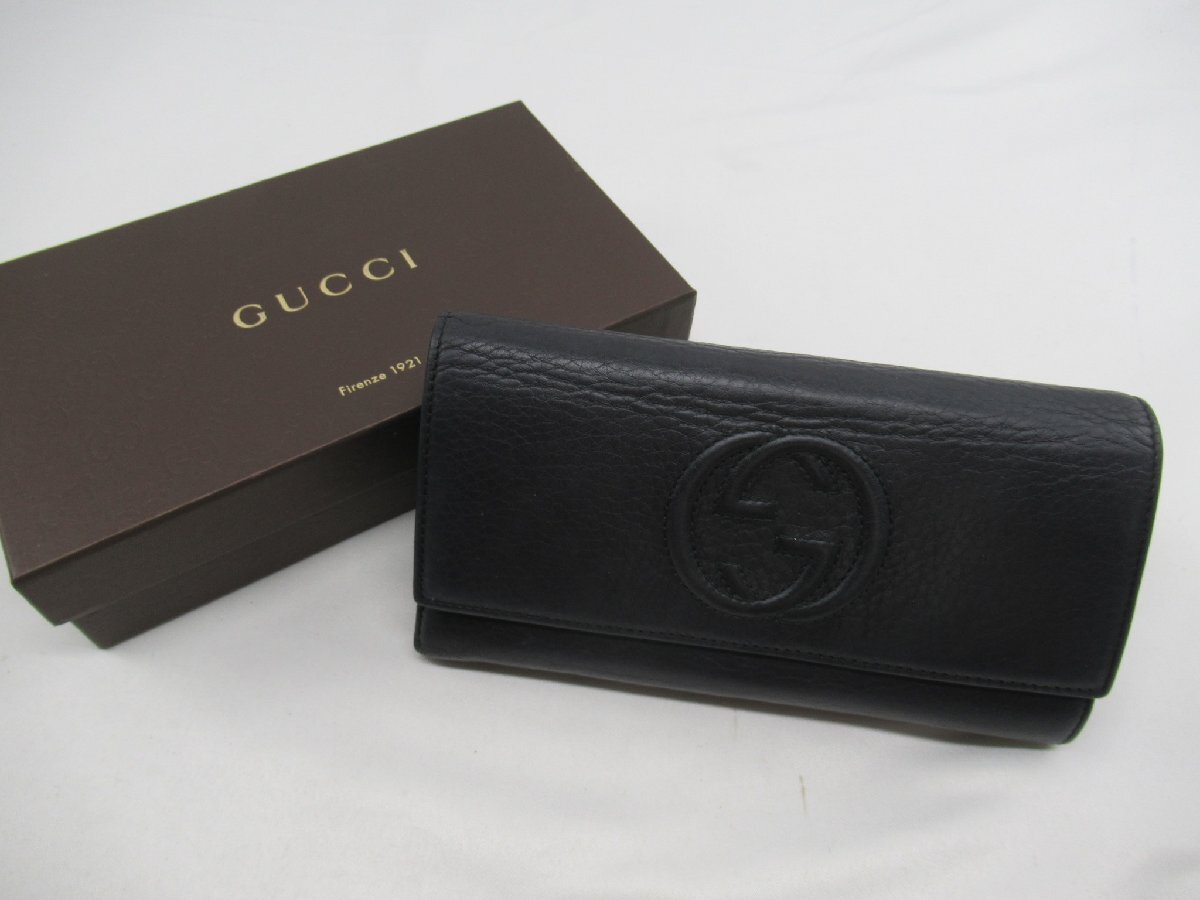 > ★【B送900円】2481 GUCCI グッチ ソーホー インターロッキング 二つ折り長財布 282414・534363 ウォレット レザー ブラック 箱付