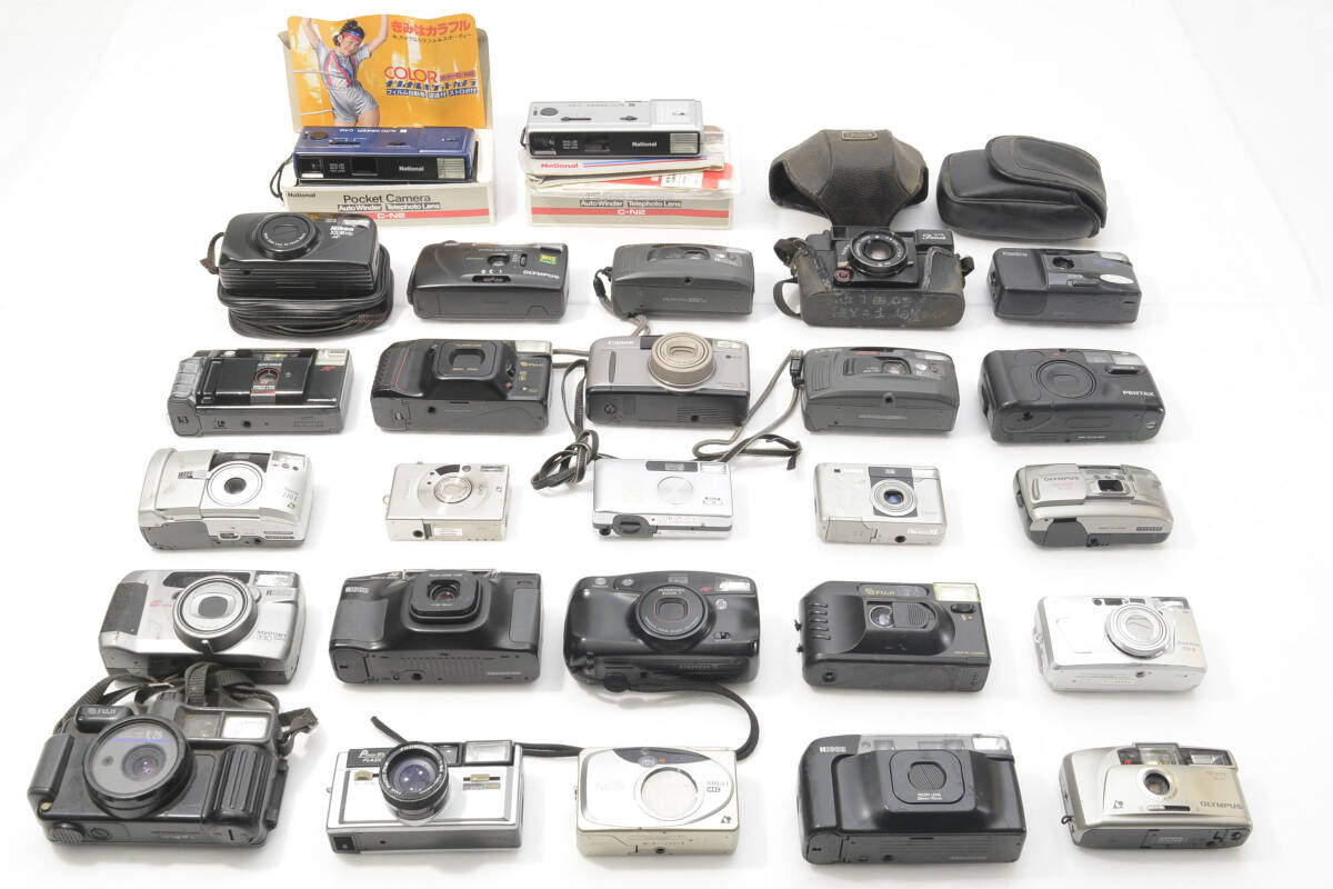 > 27個 まとめ Canon Autoboy S Nikon Minolta Olympus KONICA コンパクト フィルムカメラ ジャンク 動作未確認 現状 大量 #051 #021 #1342