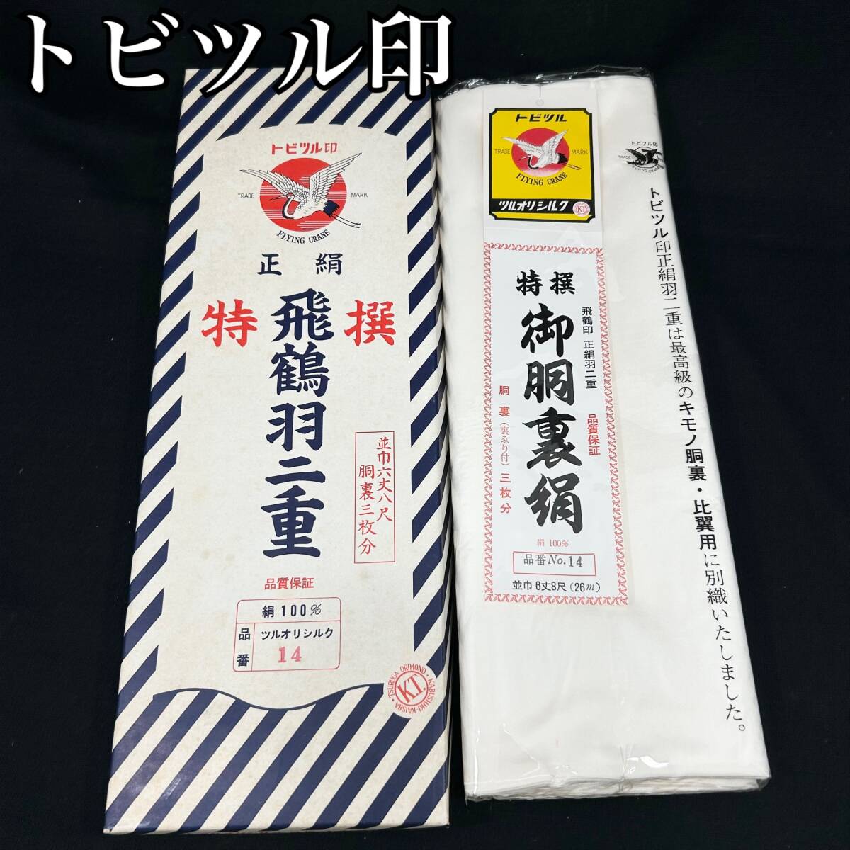 - 【未開封】トビツル印 正絹 特撰 飛鶴羽二重 巾六丈八寸胴裏3枚分 絹100% 並巾6丈8尺 26m 白(E283)
