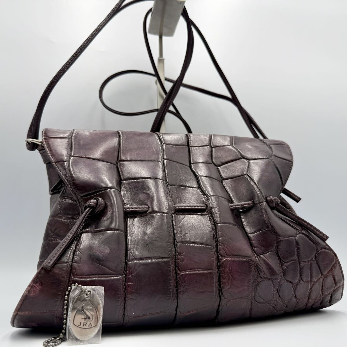- JRA認定 マットクロコダイル ショルダーバッグ フラップ リアルレザー ワニ革 エキゾチック パープル