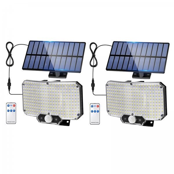 - 2個セット センサーライト 屋外 ソーラー 234LED リモコン付き 分離型 5M延長コード 人感センサー モード3つ ソーラーライト 自動点灯/消灯