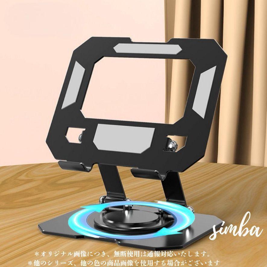 - 【360°回転】タブレットスタンド 高耐久アルミ合金製 ブラック 角度・高さ調整