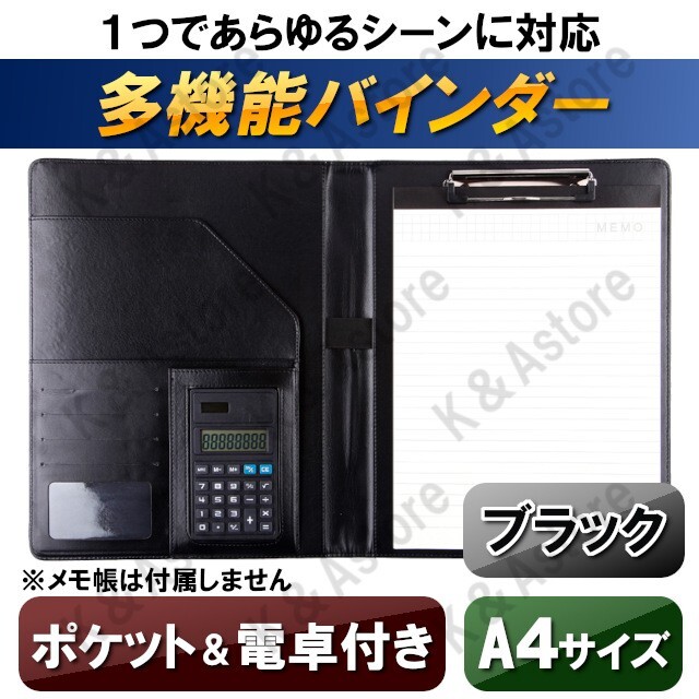 - バインダー A4 クリップボード 二つ折り ファイルボード 革 PUレザー 多機能 ペンホルダー カードポケット付き 名刺入れ ビジネス ブラック