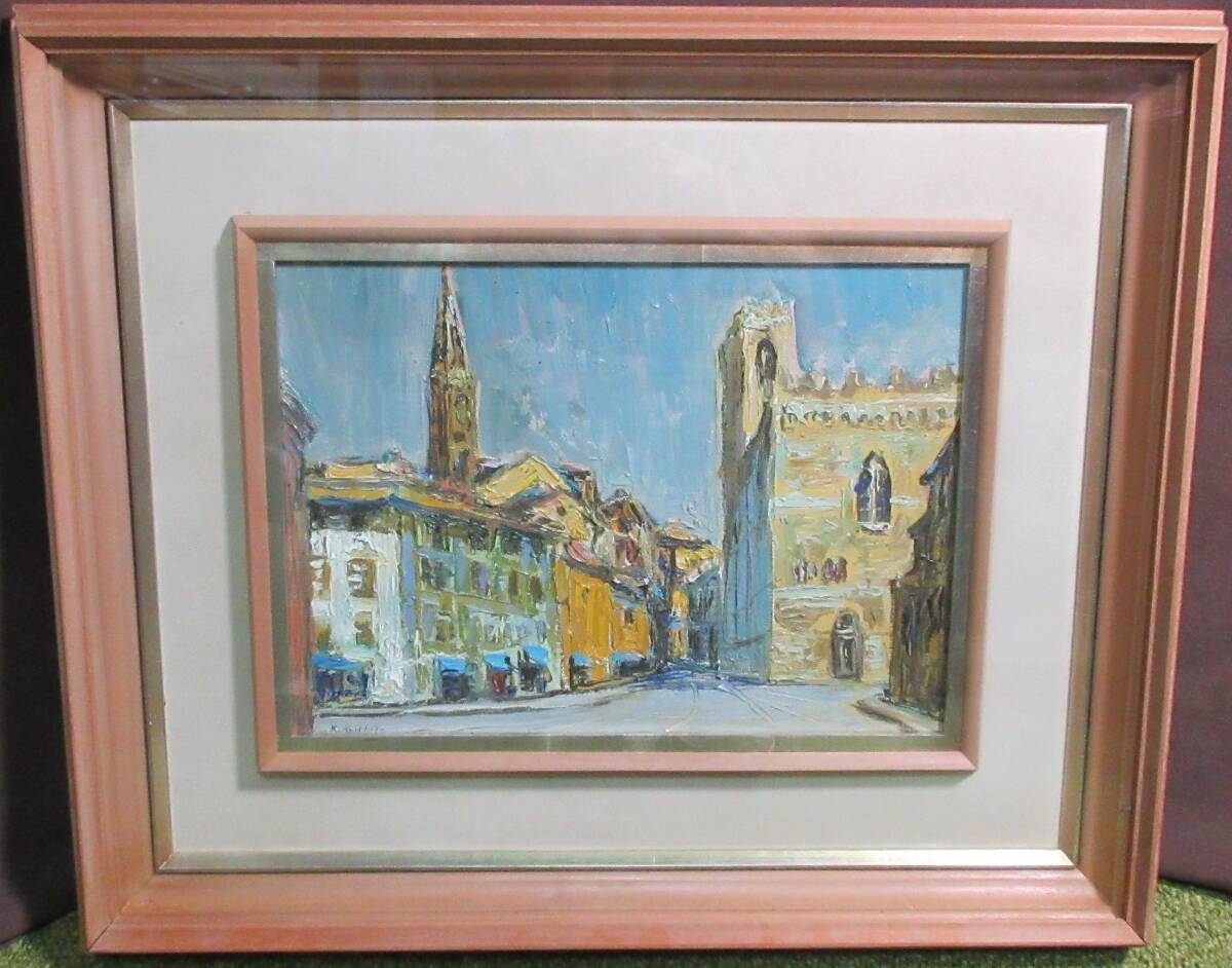 - 【真作】油絵 秋元清弘 フィレンツェ 建物 町並み サイン入り