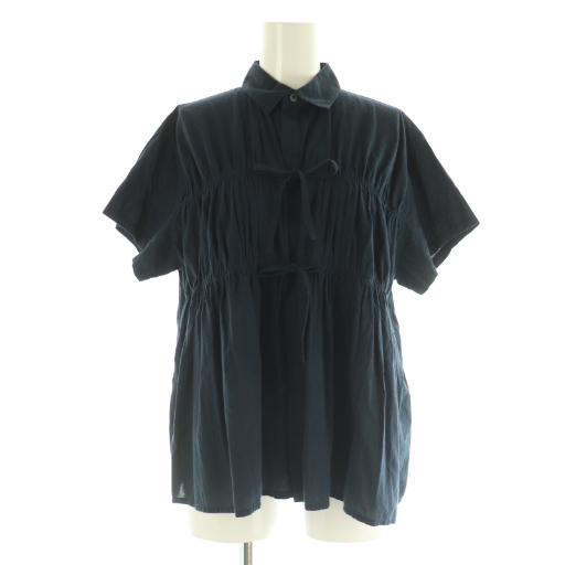 > グランマママドーター GRANDMA MAMA DAUGHTER ティアードリボンシャツ ブラウス 半袖 ギャザー 0 ネイビー /MY ■OS レディース