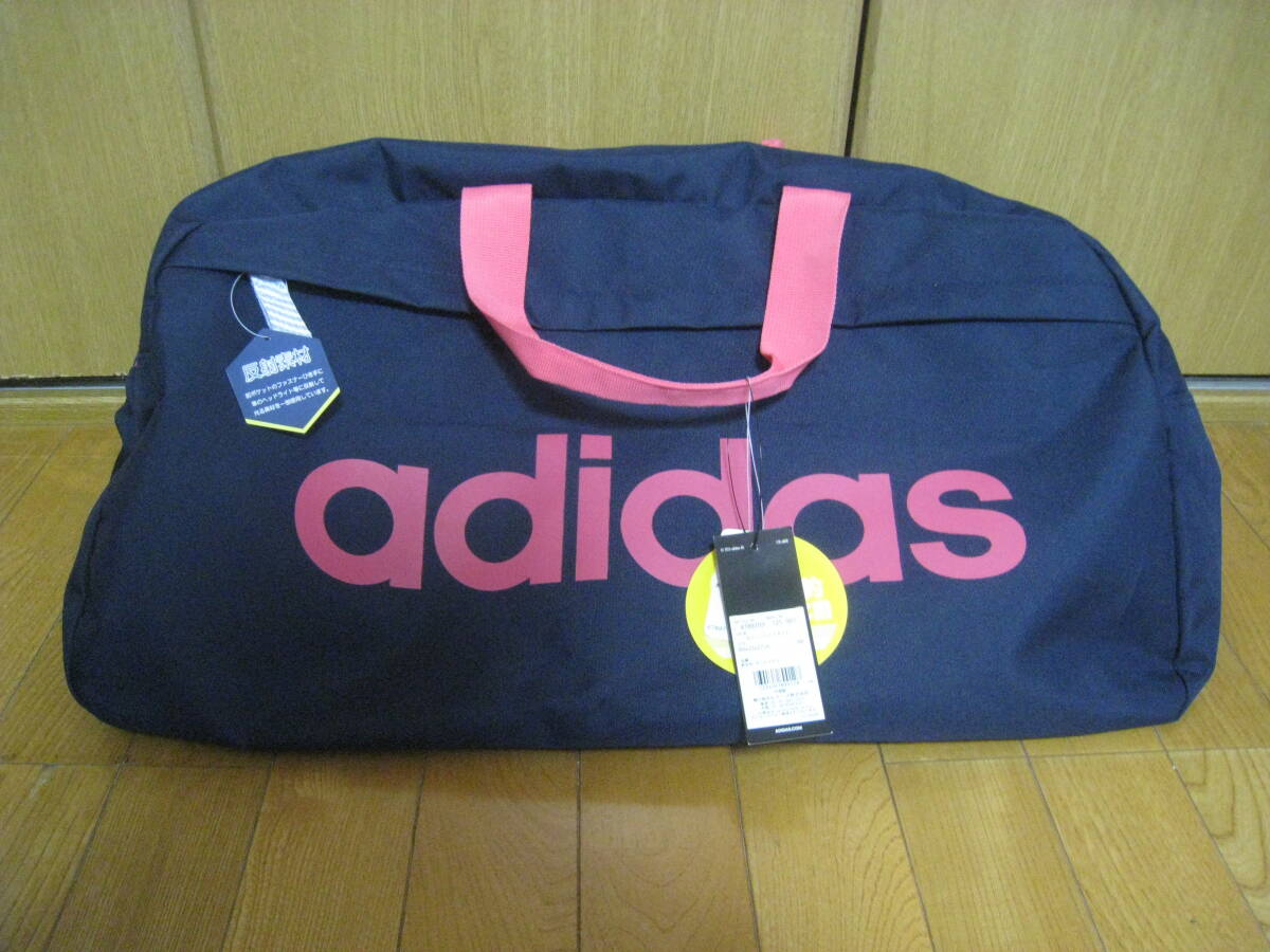 - adidas アディダス スポーツバッグ ボストンバッグ 38L 3~4泊用 ネイビー×ピンク タグ付き