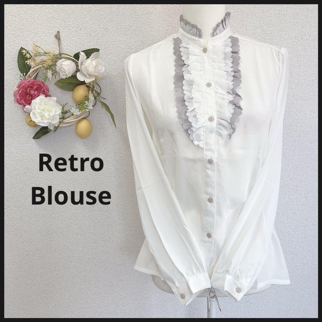 - ☆1点もの☆ リブソニア LIBSONIA レトロブラウス フロントレース 日本製 白 ホワイト M