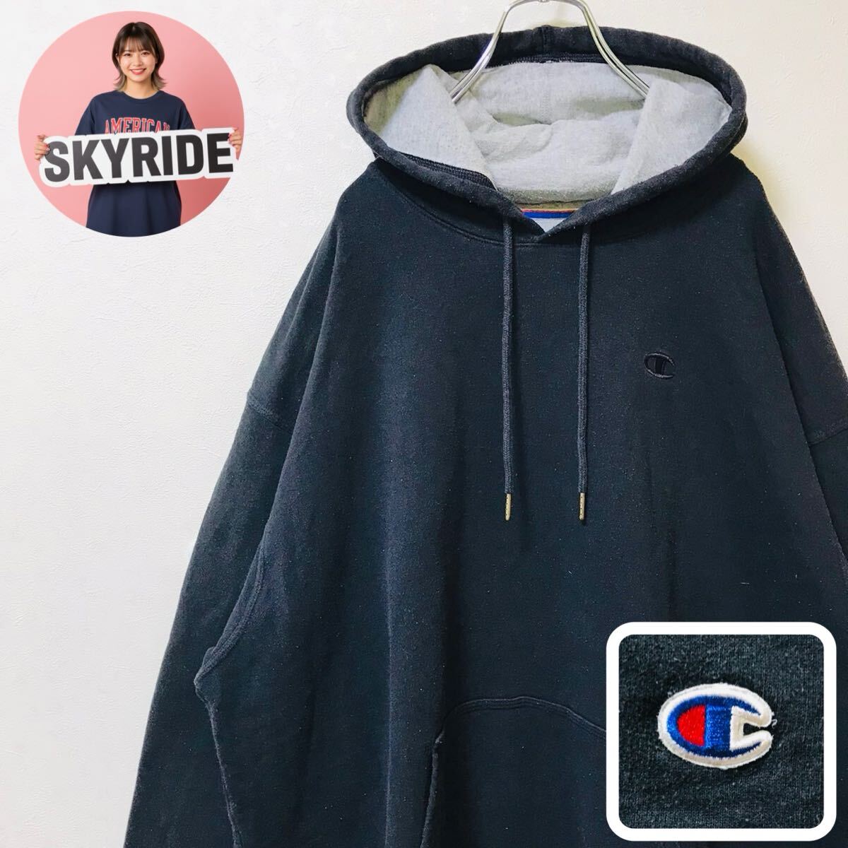 > 【人気】Champion チャンピオン 2000s パーカー ブラック 4XL 刺繍ロゴ ビッグシルエット ゆるだぼ ストリート 古着 #TT0331