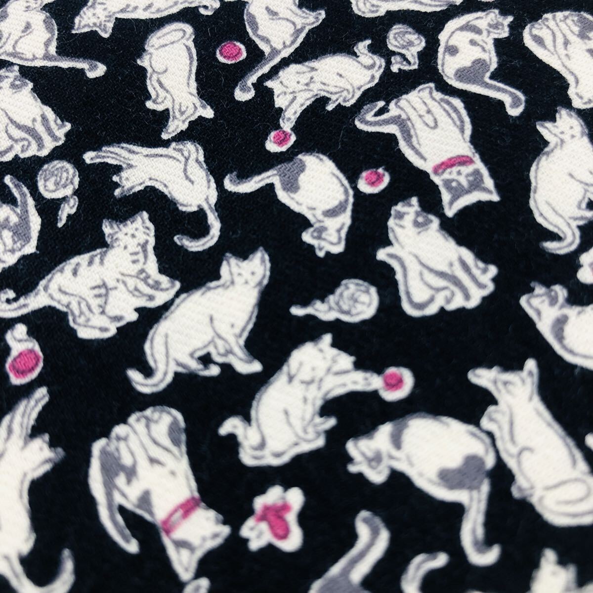 - 2m 日本製 HOKKO ネコ柄 コットン ビエラ 生地 はぎれ コットン 110×200 布 猫