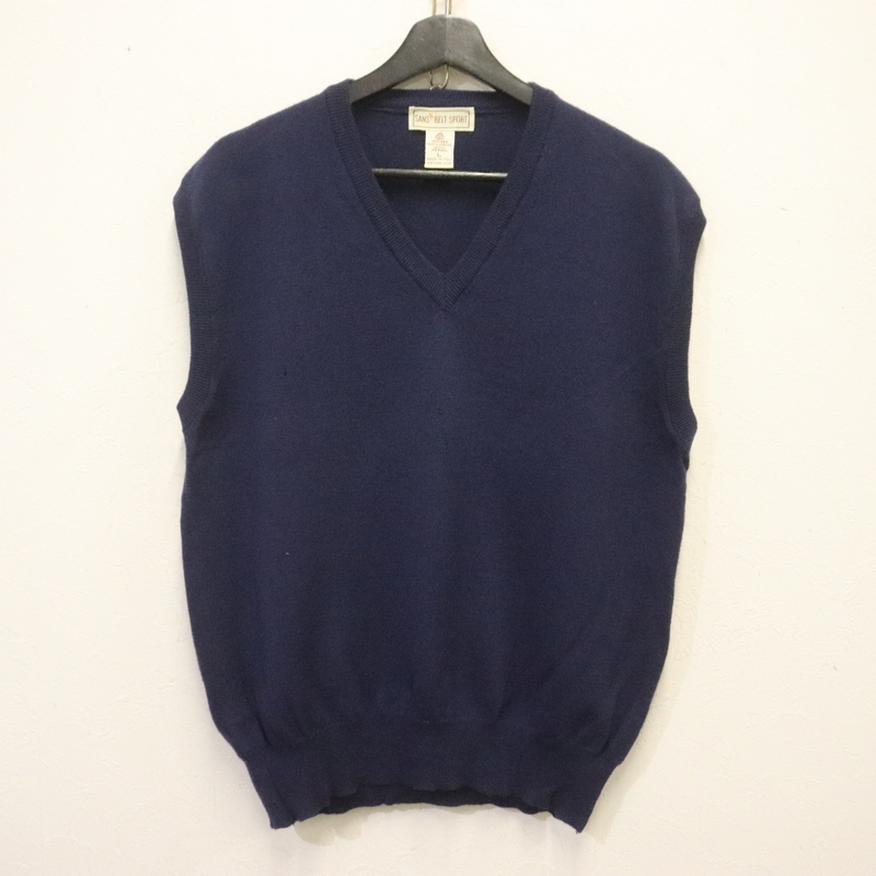 > J906 90sビンテージ ウールニットベスト イタリア製■1990年代製 表記Lサイズ 無地 Vネック アメカジ ストリート 古着 古着卸 激安 希少