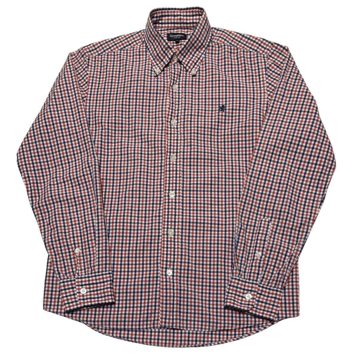 - Gymphlex ジムフレックス 長袖ボタンダウンシャツ 刺繍 ギンガムチェック M