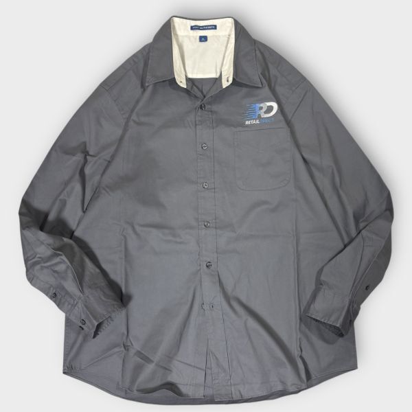 > ★RETAIL DIRECTロゴ刺繍★PORT AUTHORITY 長袖BDワークシャツ sizeXL アメリカ 古着 クリーニング プレス済み 2515