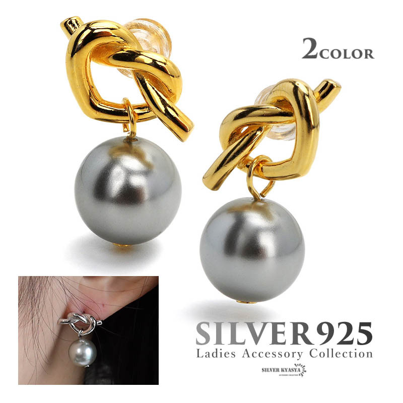 - (シルバー) ノットグレーパールピアス 10mm パールピアス グレーパール 両耳用 2点セット シルバー925