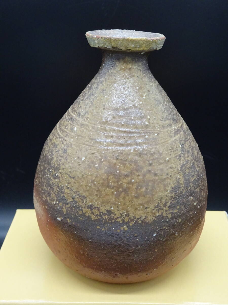 - 備前焼 人気実力作家 渡邊琢磨(師:工芸会正会員山内厚可)★備前黄ゴマ辣韭徳利 紙箱、陶歴付 酒器 茶碗 壺 茶道具