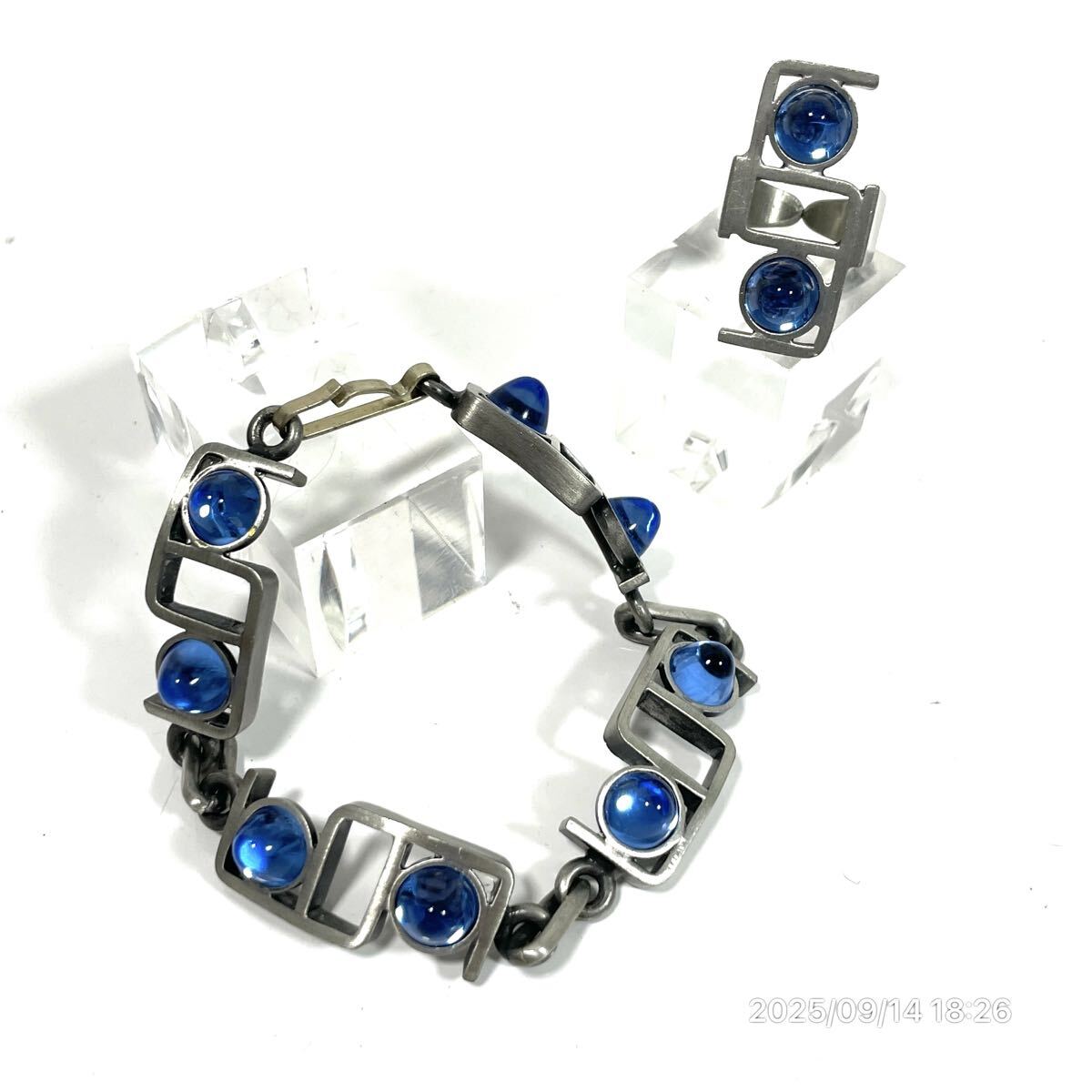 - DENMARK デンマーク製 Legeskov Tin ロゲスコフティン ライストーン シルバーカラー ブレスレット 指輪 2点セット アクセサリー 装飾品
