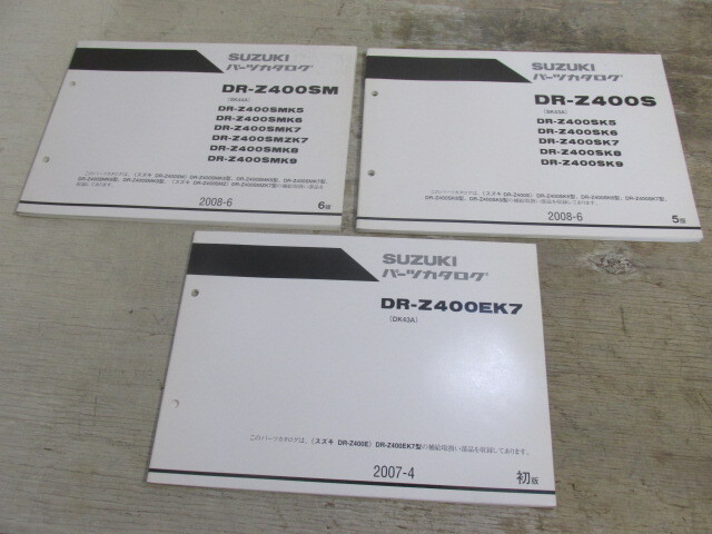 > スズキ 二輪 400 オフロード '07年 '08年 DR-Z400EK7 S SM パーツカタログ 3冊