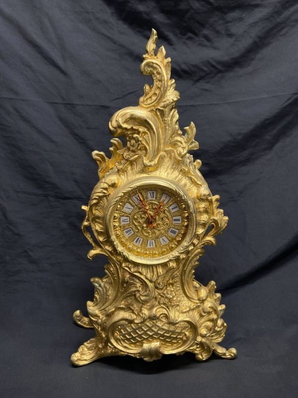 > 【J333】ゴールド 金色 置き時計 Q2151-K715 アンティーク ビンテージ 高さ47cm 金属製 洋風 貴族 ヨーロピアン b