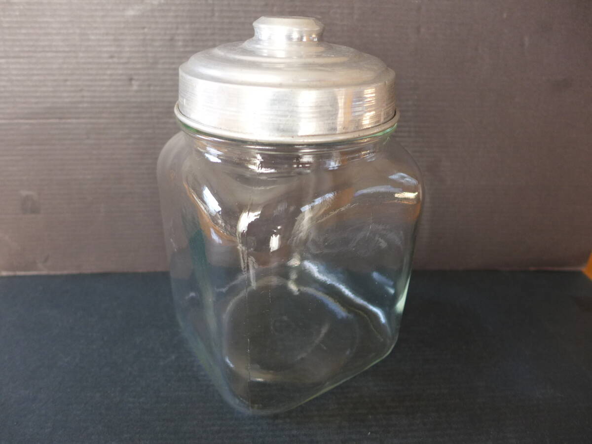 - ★ 時代物【美品】駄菓子屋の菓子入れ ガラス瓶 アルミ蓋付き 昭和レトロ アンティーク ★